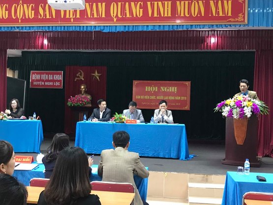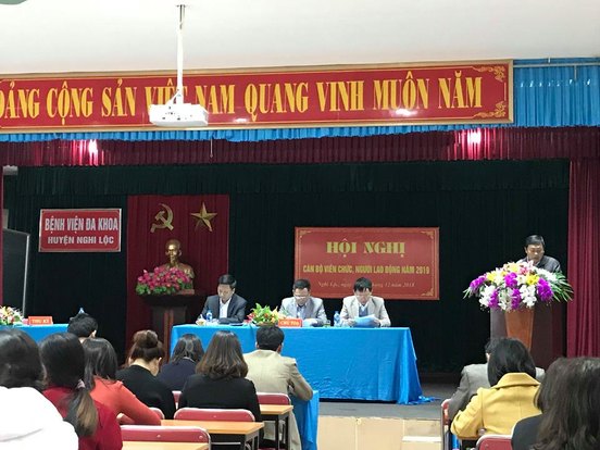 Hội nghị Viên chức Người lao động năm 2019 của Bệnh viện đa khoa Nghi Lộc được tổ chức vào lúc 7giờ 30’ ngày 29/12/2018 tại hội trường bệnh viện, với sự tham dự của 221 VCNLĐ của bệnh viện, dưới sự chủ trì của đồng chí Nguyễn Huy Phúc – Bí thư Đảng ủy, Giám đốc bệnh viện; đồng chí Nguyễn Hữu Thọ – Phó bí thư Đảng ủy, Phó giám đốc bệnh viện và đồng chí Nguyễn Thế Tùng – Chủ tịch Công đoàn, Phó giám đốc bệnh viện.